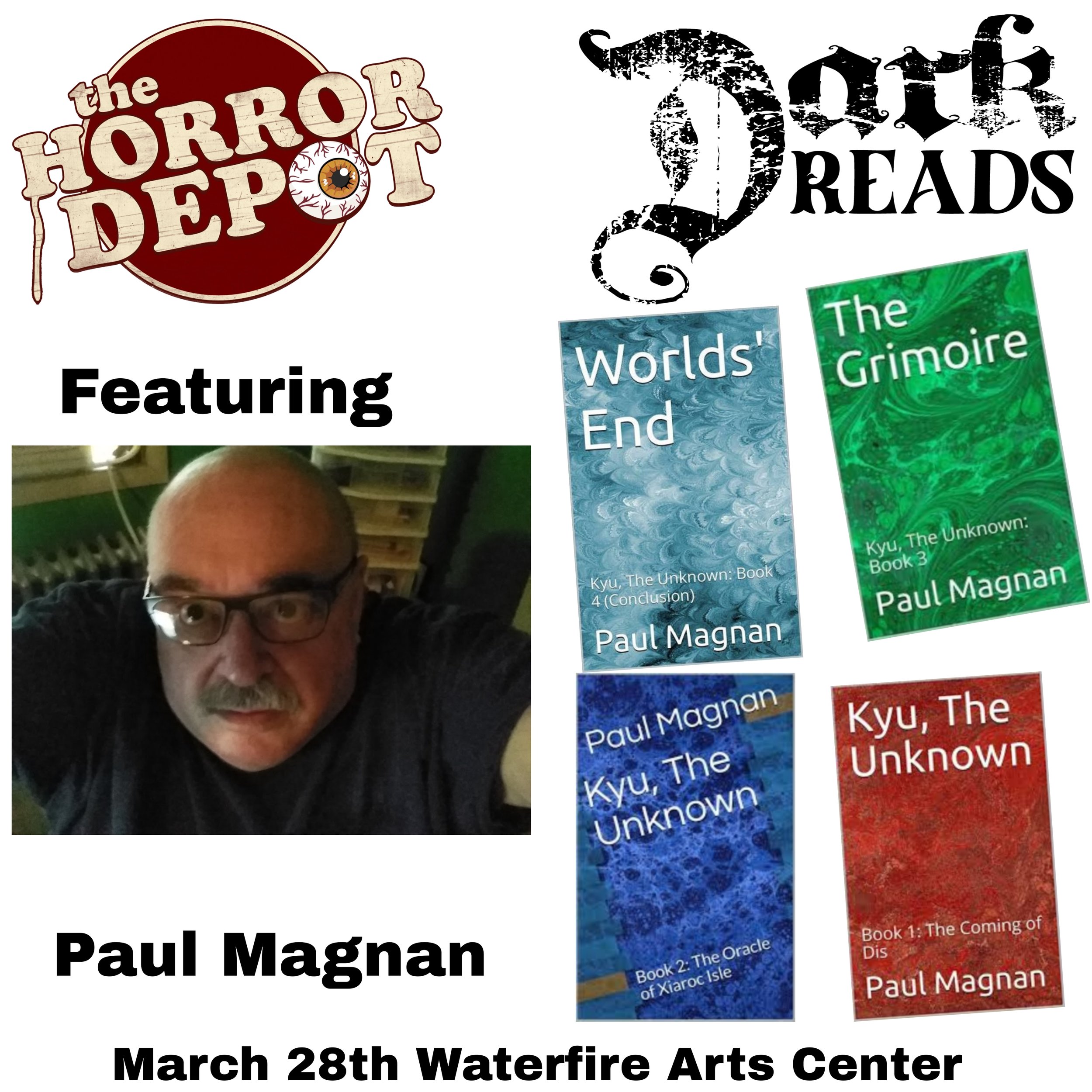 Paul Magnan has been writing stories that veer from the straight and narrow for many years. He has published four novels from the dark fantasy series Kyu, The Unknown (The Coming of Dis, The Oracle of Xiaroc Isle, The Grimoire, Worlds' End). He has a short story collection, Veering From the Straight and Narrow, and has had stories published in many venues, including the Bram Stoker Award nominated anthology We Are Providence and the Shirley Jackson Award nominated anthology Monsters In The Mills.